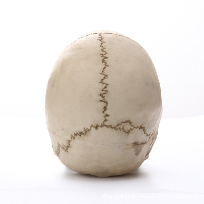 Product Overview: An intricately designed 1:1 replica of a human skull, ideal for interior decoration, made from robust resin that is perfect for Halloween setups, as an artistic sculpture, or as a teaching aid in medical fields.