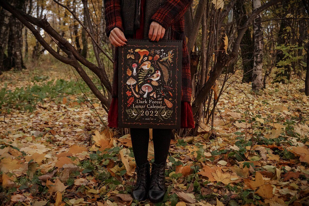 ✧ Dark Forest Lunar Calendar 2022: Features 12 unique illustrations designed throughout the year. Embracing botanical designs, enchanting creatures, greenery, natural beauty, wildlife, and the celestial aspects of the moon and stars, alongside the inner strength we all possess. The comprehensive layout featuring all details and symbols was meticulously crafted.