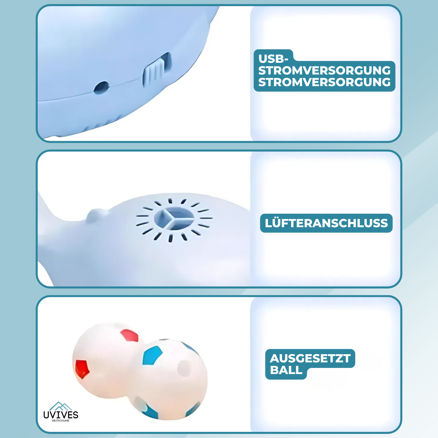 ✔️ Cools and entertains simultaneously: The integrated fan delivers a refreshing breeze – ideal for warm days.