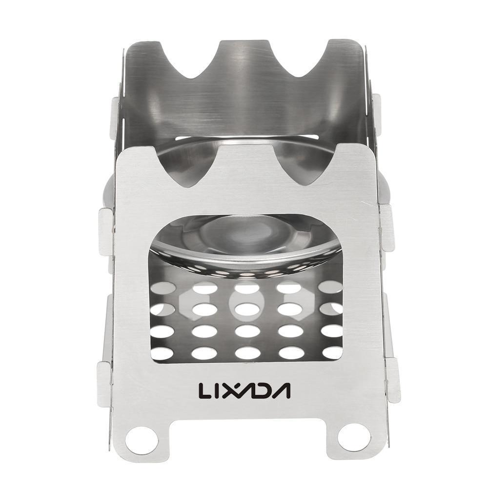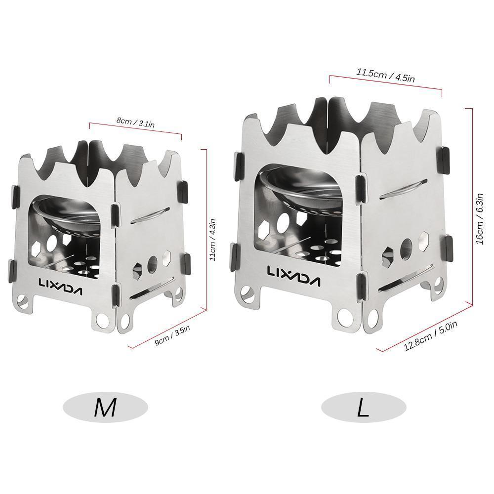 Folding Pocket Rocket Stove for Wood Camping with Alcohol Tray in Stainless Steel