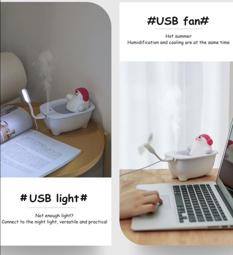 A cuddly polar bear sits in the tub with a gentle mist of air surrounding him. He's perfect for any room and will help you relax after a long day. A Polar Bear Bathtub Air Humidifier is lightweight, exquisite, and can be used in bedrooms, living rooms, or offices. The fine nano mist moisturizes without wetting your desk. This product is perfect to have around when you need some relaxation after a hard day at work!