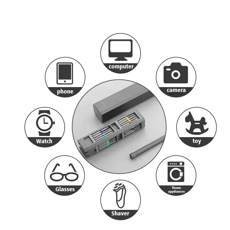 • 🔧 24 Precision Bits – An assortment for every job, from tiny screws to intricate tasks.